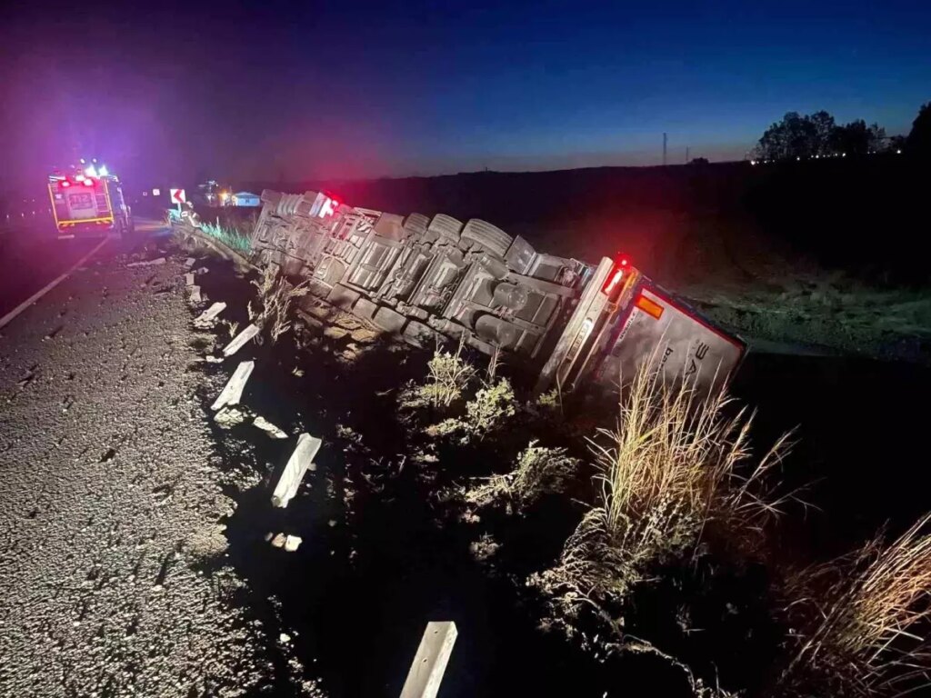 Edirne’nin Uzunköprü ilçesinde devrilen seramik yüklü tırın şoförü yaralandı.